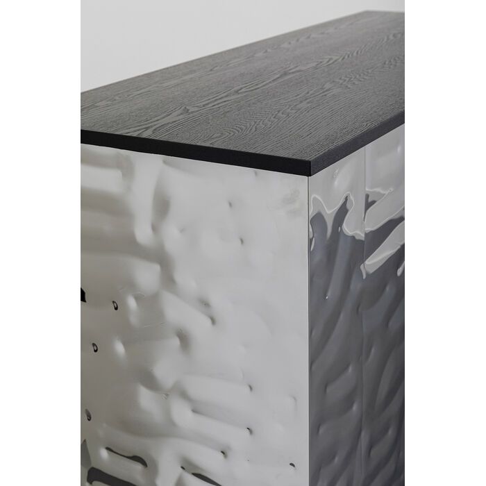 Der Barschrank Caldera 120x105cm besticht durch sein edles Design und hochwertige Materialien. Der Korpus des Schranks besteht aus Esche Furnierschichtholz, das furniert ist, während die Front aus lackiertem Edelstahl gefertigt ist. Die Rückwand des Schranks besteht aus mitteldichter Faserplatte, die ebenfalls lackiert ist, und die Füße sind aus Esche Furnierschichtholz furniert. Die Schublade ist aus Esche mitteldichter Faserplatte furniert und der Fachboden aus Esche Furnierschichtholz furniert.