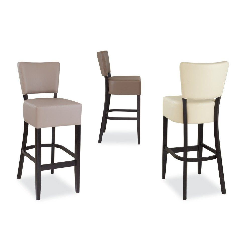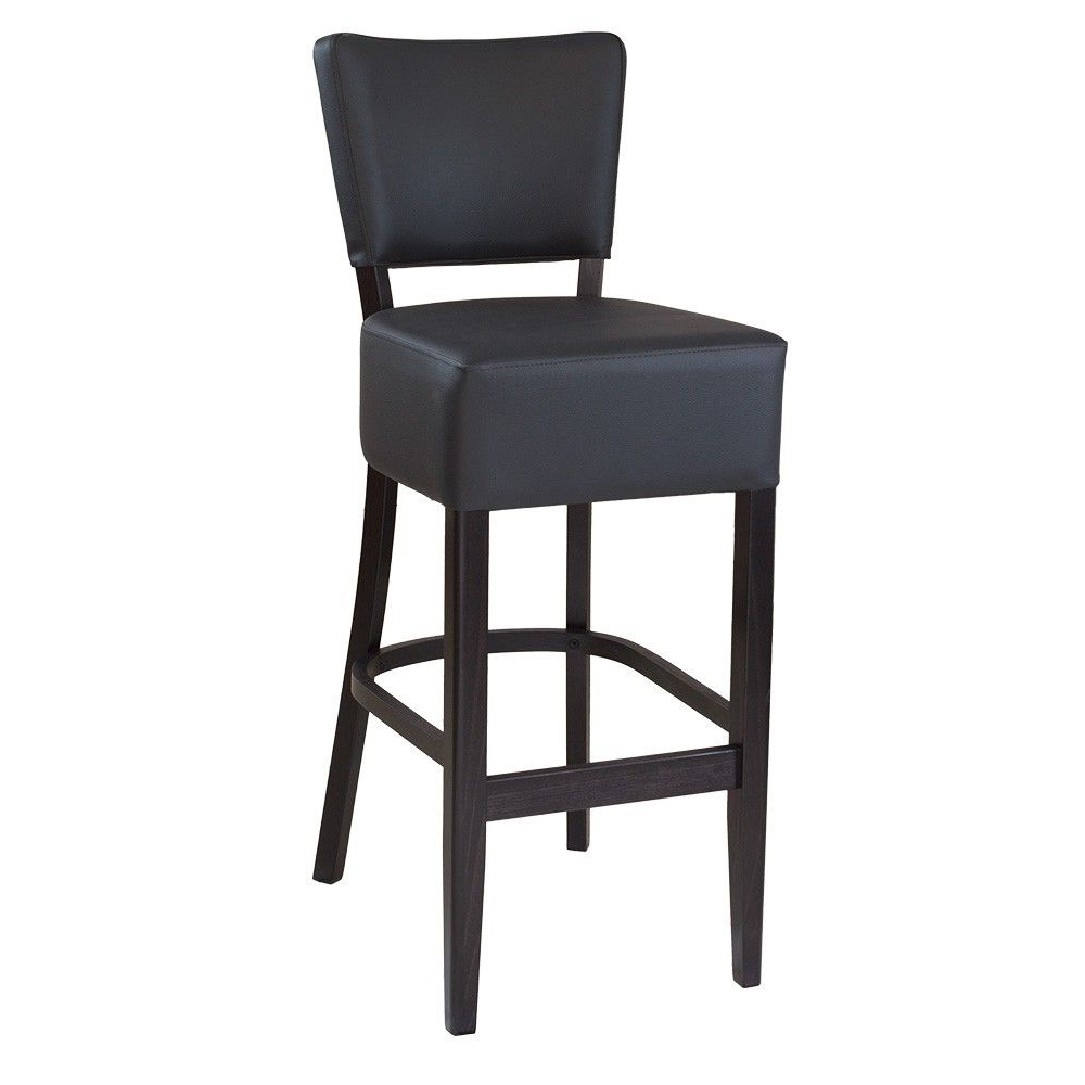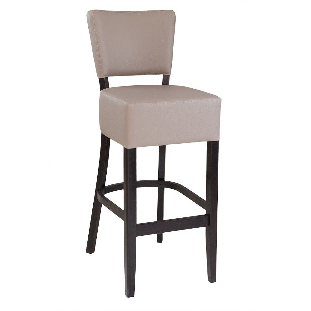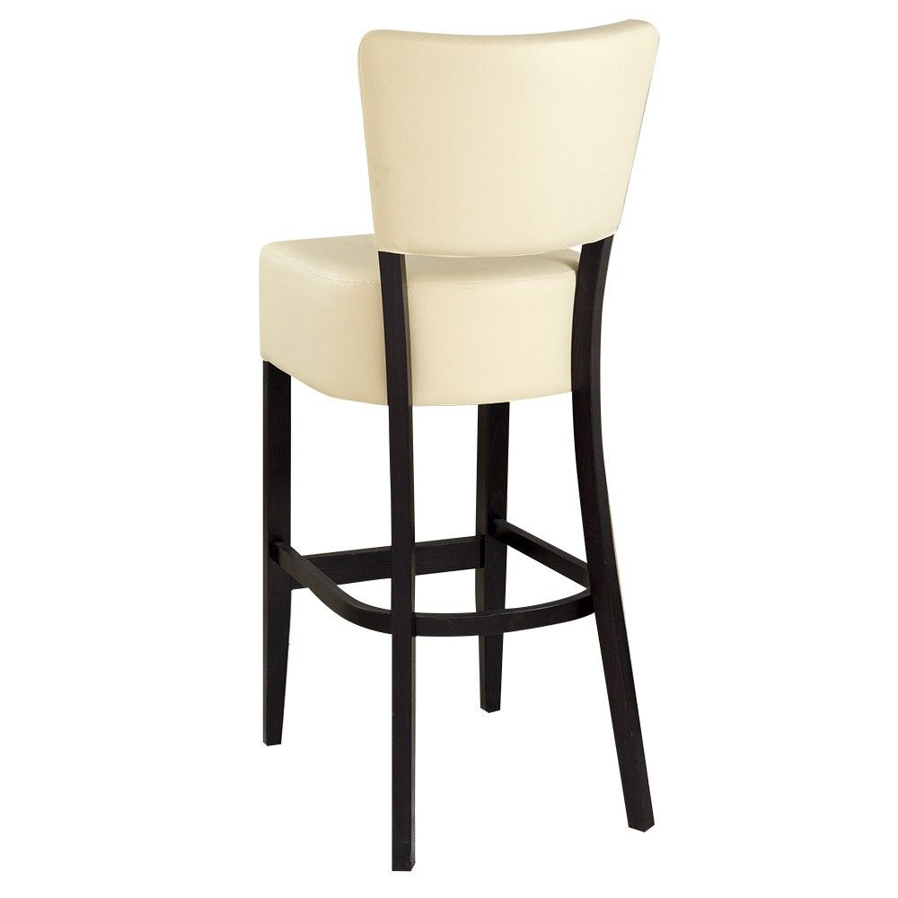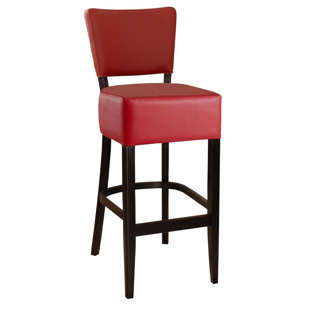 Der Akina-Bar ist ein preisgünstiger Barhocker mit gepolsterter Sitz- und Rückenfläche. Der Vollpolsterbarhocker hat zusätzliche Holzstreben, die für mehr Stabilität sorgen.
