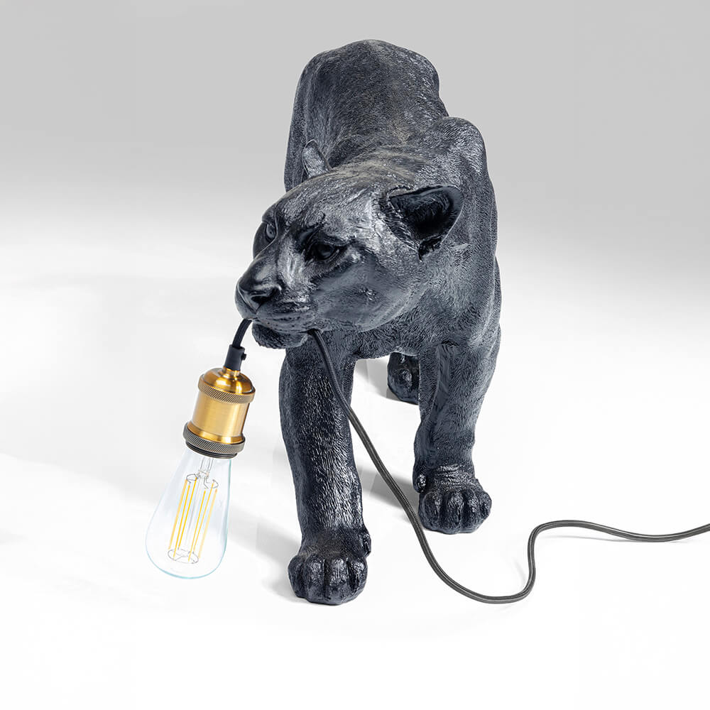 - Exklusive Bodenlampe in Form eines schwarzen Panthers, Länge ca. 85 cm
