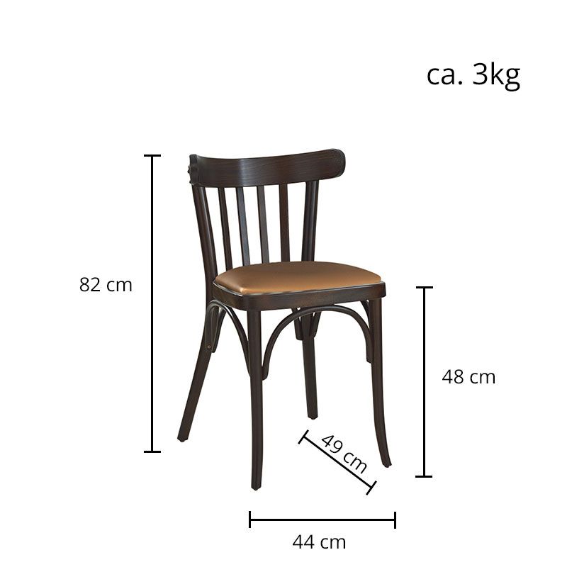 Mit dem Modell Bistro 733-P haben Sie einen schönen Bistrostuhl gefunden. Der Bugholzstuhl hat eine gepolsterte Sitzfläche und einen verstrebten Holzrücken. Er ist ideal für Bistros und viele andere Gastronomiebetriebe. In unserem Shop ist dieser Stuhl auch mit Holzsitz erhältlich.