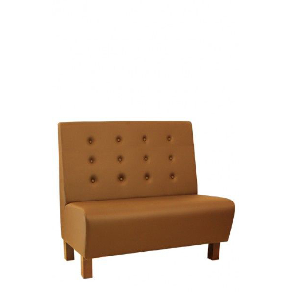 Eine Polsterbank mit angedeuteter Pfeiffensteppung im Rücken und Stollenfüßen, diese Loungebank ist für die Ihren Gastronomiebetrieb geeignet.