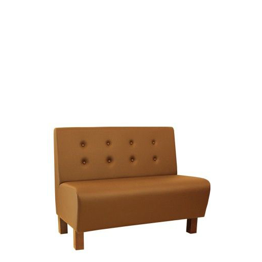 Eine Polsterbank mit angedeuteter Pfeiffensteppung im Rücken und Stollenfüßen, diese Loungebank ist für die Ihren Gastronomiebetrieb geeignet.