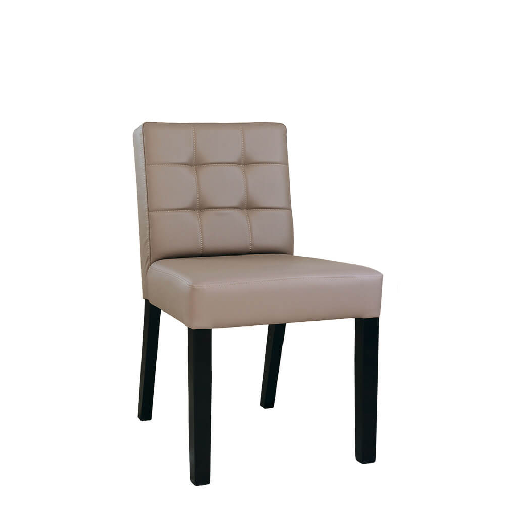 Der Comoro Vollpolsterstuhl ist durch seine auffällige Rückensteppung besonders attraktiv. Daher ist er ideal für Bistros, Cafés oder Loungen. Bezugsstoff sowie Beizton sind frei wählbar.