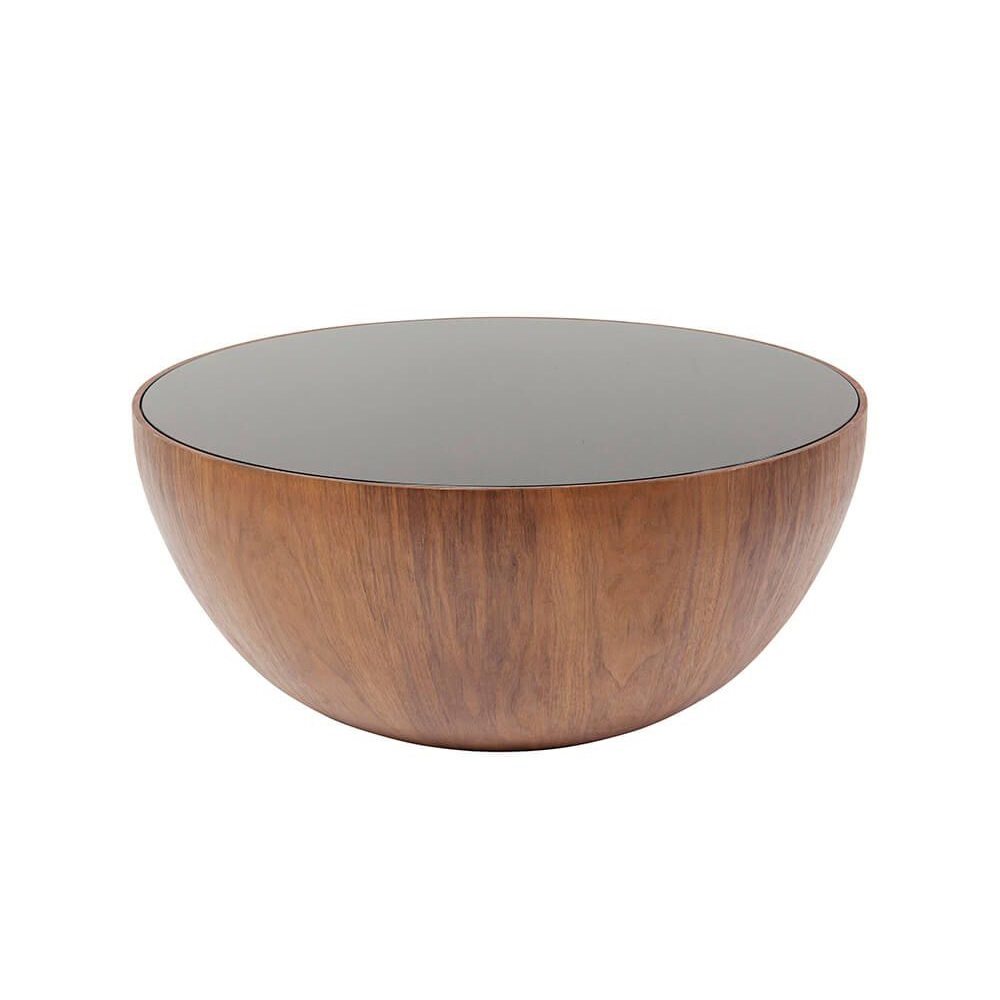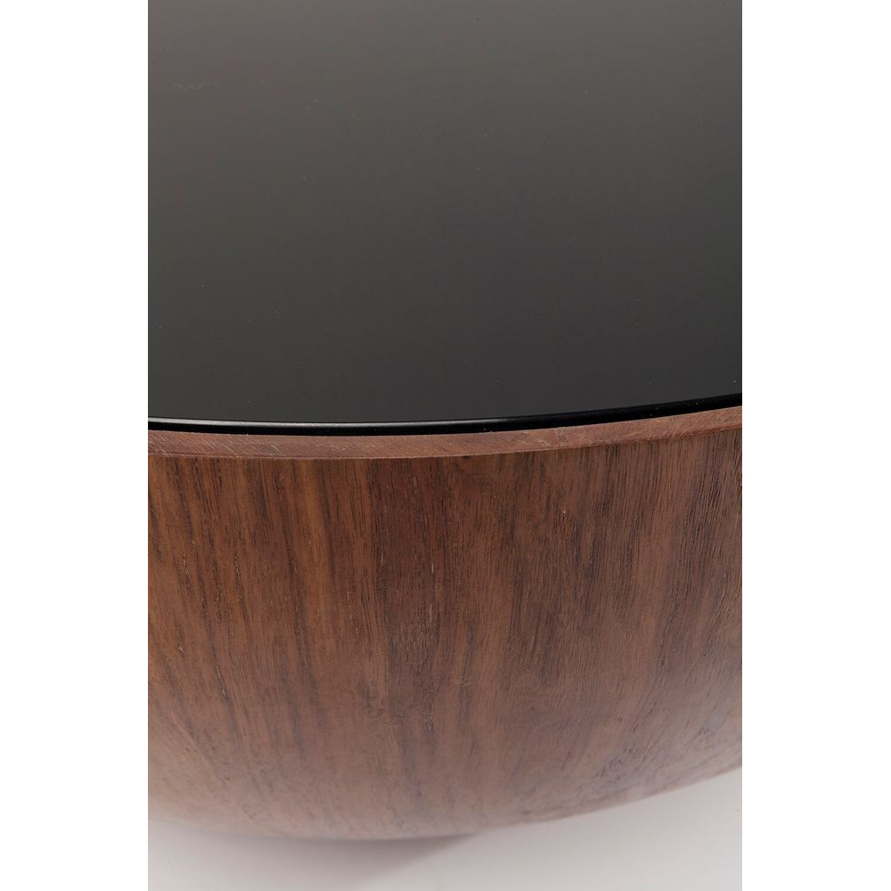 Unkompliziert und ansprechend präsentiert sich dieser Couchtisch mit edlem Walnuss-Furnier. Er kombiniert elegant schwarzes Glas mit dunklem Holz in einer schlicht-schönen Halbkugelform. Dieses Designermöbelstück harmoniert perfekt mit kubischen Möbeln und eckigen Sofas. Es bietet zu 100 Prozent Funktionalität und eine schlichte Formgebung ohne überflüssigen Schnickschnack. Legen Sie ein großes Fell darunter und ergänzen Sie es mit Sitzkissen, und schon wird der Tisch zum Mittelpunkt Ihrer Chill-Zone.