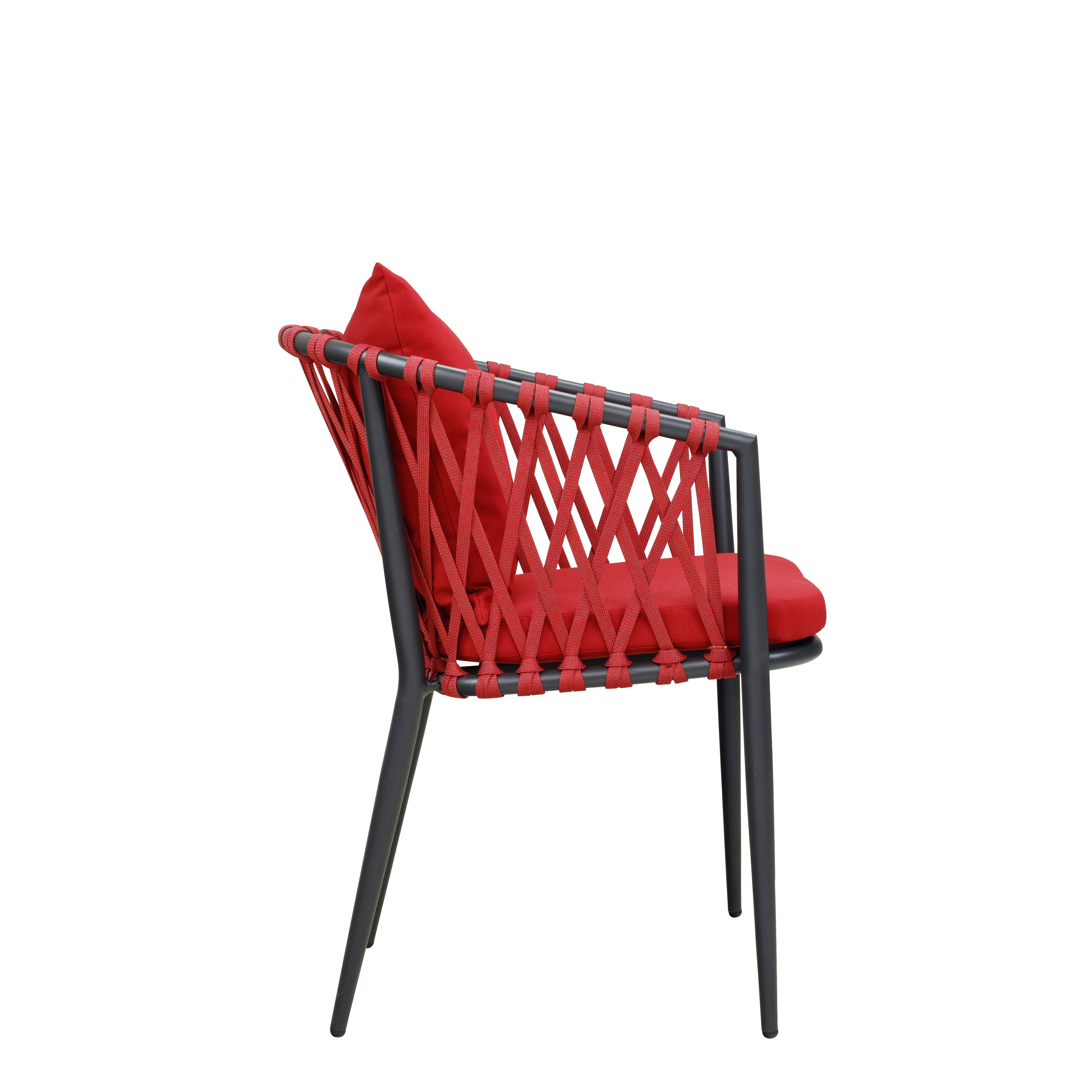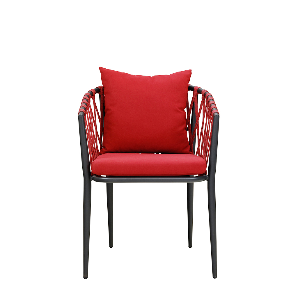 Der Crosima Red vereint modernes Design mit hoher Funktionalität. Das langlebige Aluminiumgestell und das wetterfeste Textylen-Geflecht sorgen für eine exzellente Beständigkeit, selbst bei intensivem Gebrauch im Außenbereich. Mit integriertem Sitz- und Rückenkissen bietet er einen guten Sitzkomfort für Ihre Gäste. Dank der Stapelbarkeit lässt sich der Stuhl platzsparend verstauen – gut für den flexiblen Einsatz in Restaurants, Lounges und Cafés.