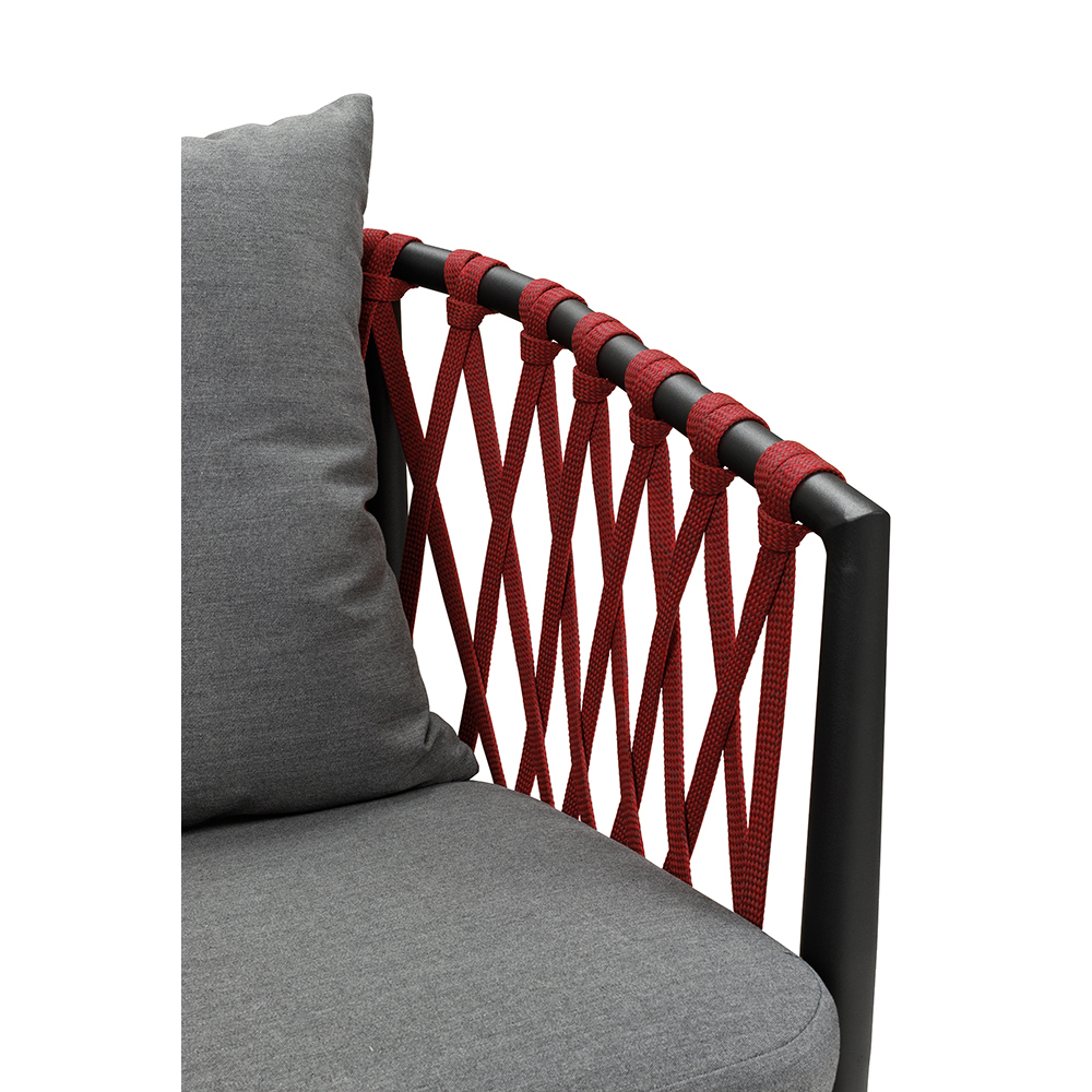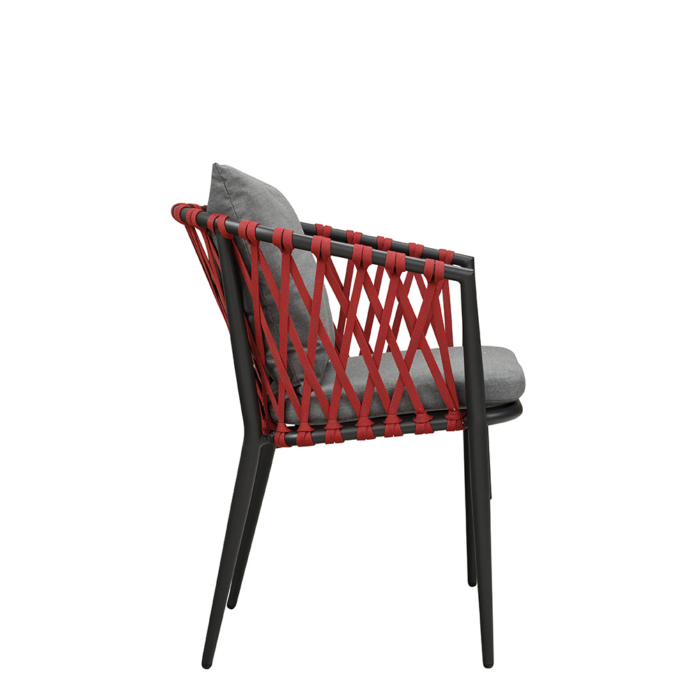 Der Crosima Red Grey vereint modernes Design mit hoher Funktionalität. Das langlebige Aluminiumgestell und das wetterfeste Textylen-Geflecht sorgen für eine exzellente Beständigkeit, selbst bei intensivem Gebrauch im Außenbereich. Mit integriertem Sitz- und Rückenkissen bietet er einen guten Sitzkomfort für Ihre Gäste. Dank der Stapelbarkeit lässt sich der Stuhl platzsparend verstauen – gut für den flexiblen Einsatz in Restaurants, Lounges und Cafés.