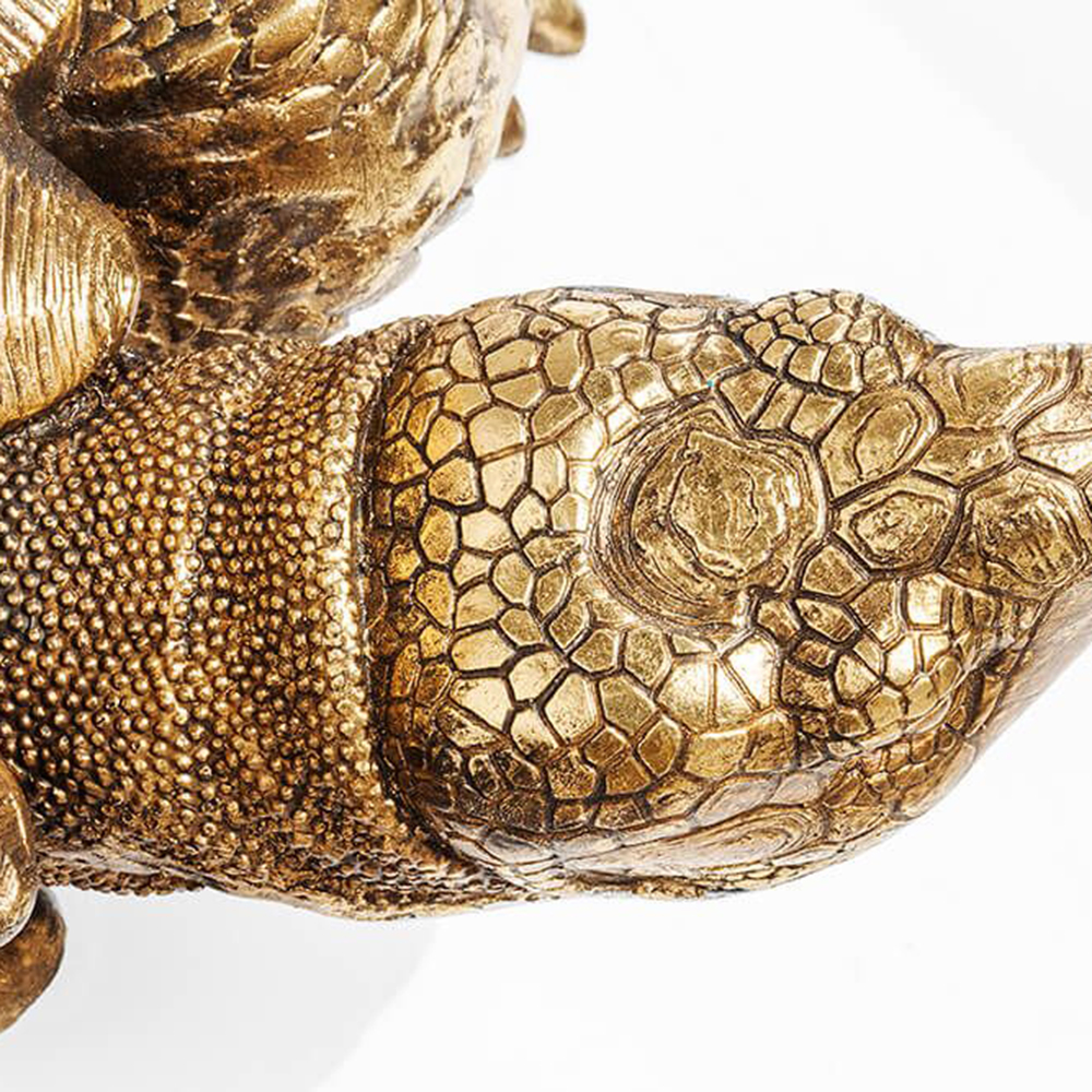 Dekorative Skulptur: Eine faszinierende Idee zur Dekoration. Dieses beeindruckende Objekt gleicht seinem Vorbild in jedem Detail. Die Figur ist detailgetreu einer Riesenschildkröte nachgebildet. Doch beachten Sie: Das Reptil beansprucht seinen eigenen Raum. Das dekorative Accessoire ist in Gold gehalten und wird die Bewunderung aller Besucher wecken.