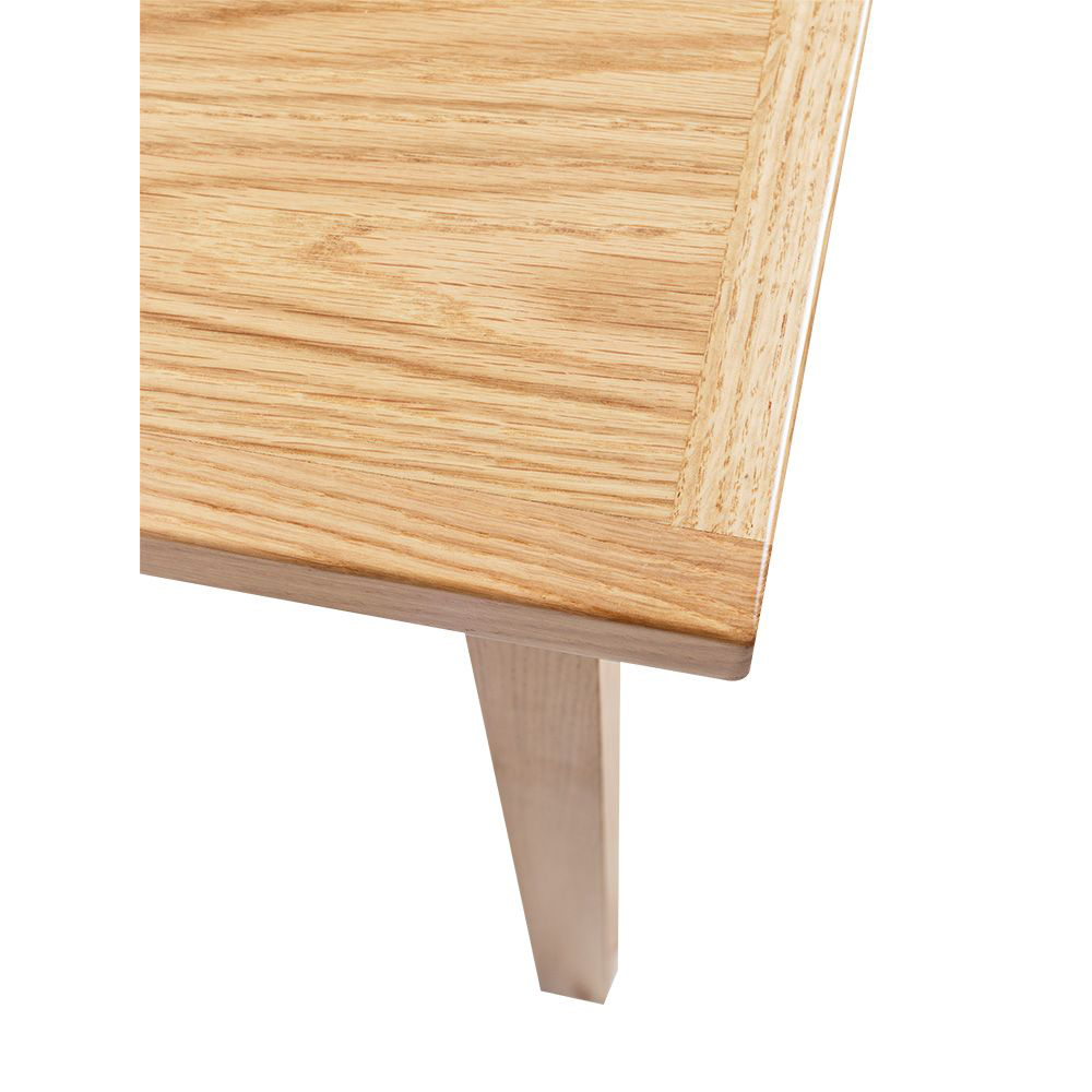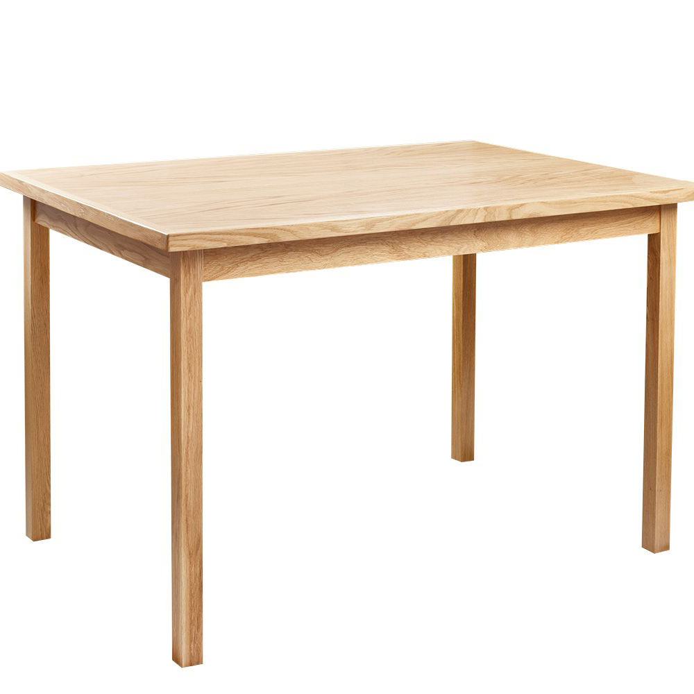 Massiver Holztisch mit einem Gestell aus Eichenholz und und einer 120 x 80 cm Tischplatte aus 25 mm Eichenholzfurnier.