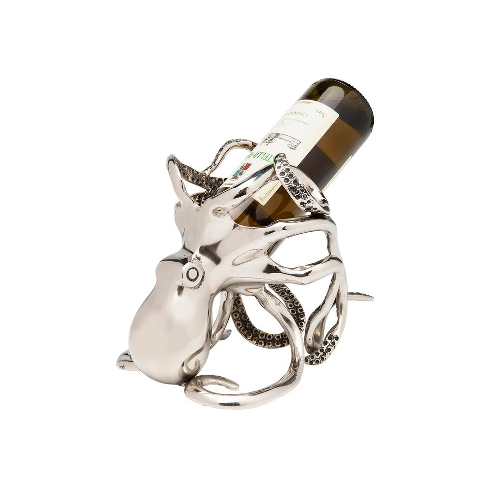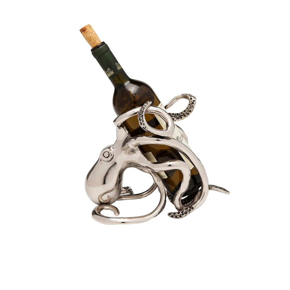 Ein origineller Flaschenhalter in Form eines Oktopus, der die Flasche in einem perfekten Winkel griffbereit hält. Einzigartig und dekorativ, hebt er sich als Highlight in Küche, Bar oder Esszimmer hervor. Als praktisches und originelles Geschenk eignet er sich ideal für Weinliebhaber und Meeresfreunde gleichermaßen. Hergestellt aus robustem Aluminium und vernickelt, überzeugt er durch Langlebigkeit und stilvolles Design.