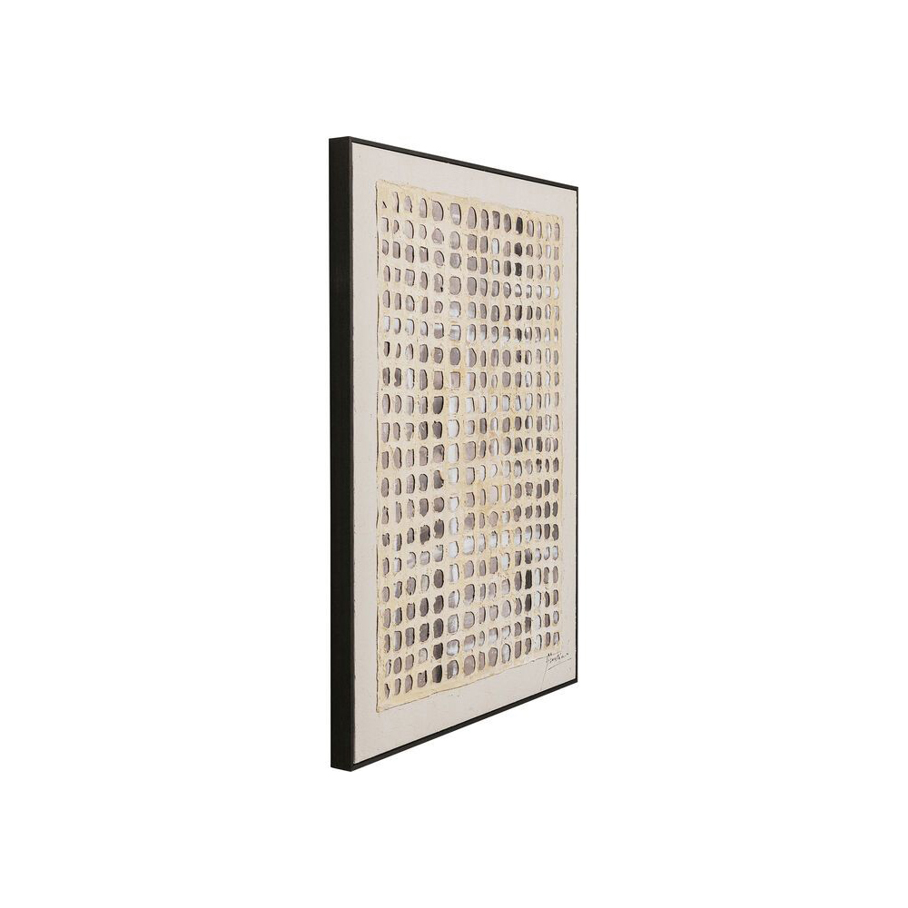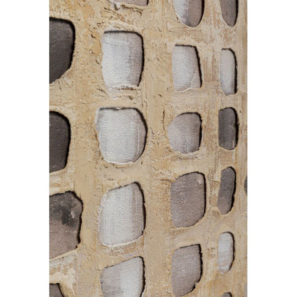 Das Bild ist in natürlichen Farbtönen gerahmt und besteht aus Baumwolle als Leinwand und naturbelassenem Massivholz aus Pinie als Rückwand. Es wurde mit Acrylfarbe handgemalt und kann sowohl horizontal als auch vertikal an der Wand montiert werden. Jedes Stück ist einzigartig in seiner Gestaltung.