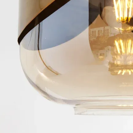 Unsere zierliche Hängeleuchte vereint Retro-Charme mit moderner Eleganz. Sie ist perfekt geeignet, um einen kleinen Flur stilvoll zu beleuchten und ihm eine gemütliche Atmosphäre zu verleihen. Der gefärbte Glasschirm sorgt für ein sanftes, warmes Licht, das nach unten abstrahlt. Die matte Messingbeschichtung des Stahlschirms verleiht der Leuchte einen Hauch von Nostalgie und verleiht Ihrem Raum einen vintage-inspirierten Look.