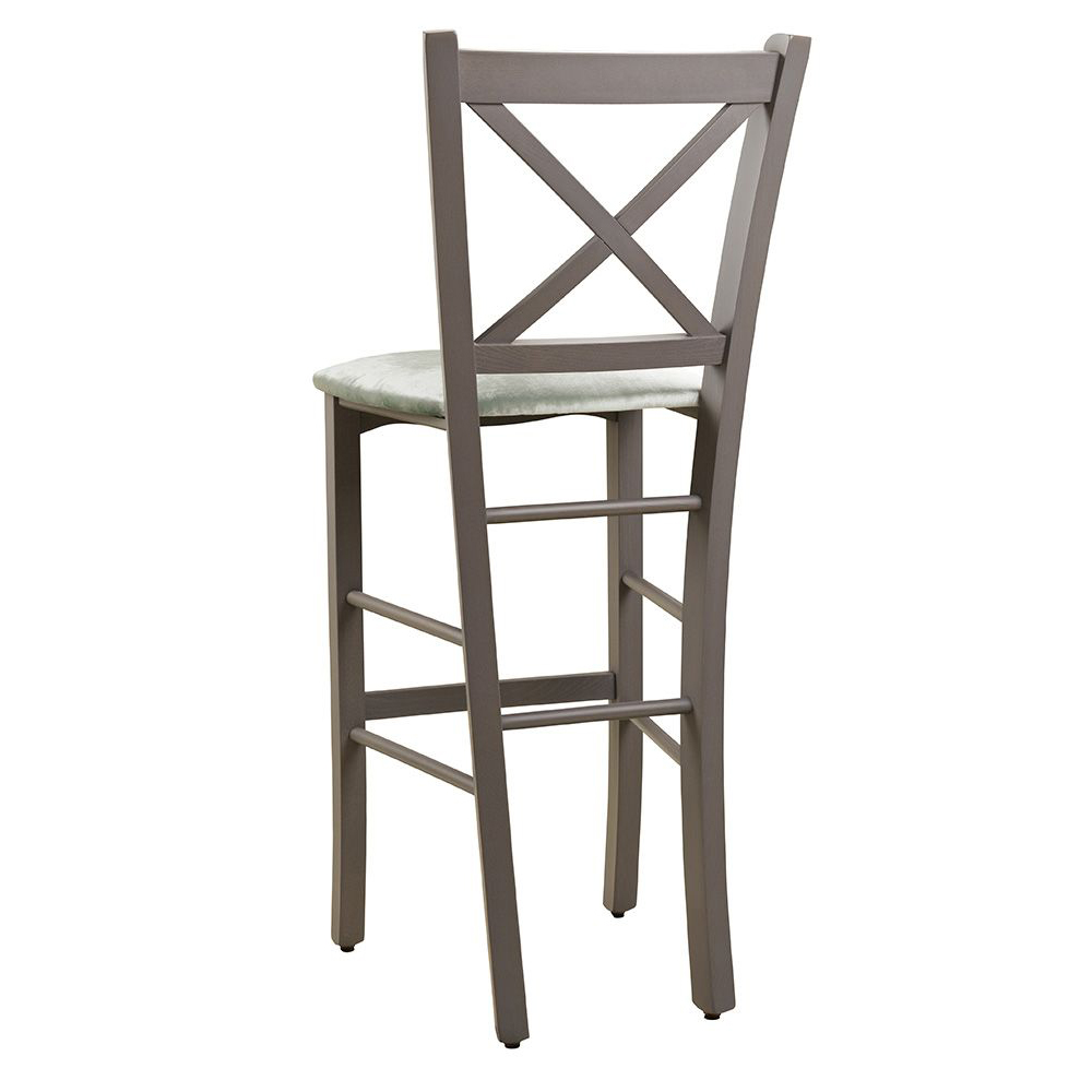Der Italax-Bar-42QJ-P ist ein zeitloser Barstuhl mit Sitzpolster. Durch doppelte Verstrebungen unter dem Sitz gewinnt er an Stabilität. Der Barhocker hat einen verstrebten Holzrücken und ist ideal für jeden Gastronomiebetrieb.
