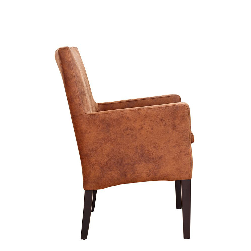 Der James-Arm ist ein moderner Vollpolsterstuhl mit gepolsterten Armlehnen und somit besonders komfortabel. Der Stuhl ist daher ideal für den Gastronomiebetrieb und mit vielen verschieden Bezugsstoffen sowie Beiztönen erhältlich.