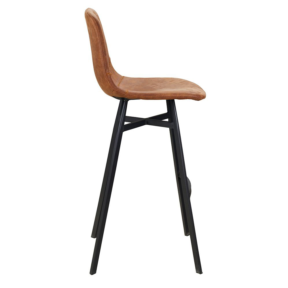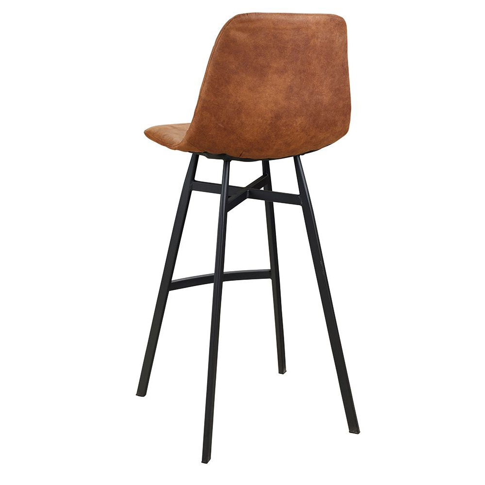 Der Jones-Bar-Vintage-Brown ist ein Metallbarhocker im Industrial-Look. Während das Gestell aus massivem Metall ist, verleiht die gepolsterte Microfaser-Sitzschale dem Stuhl die erwartete Bequemlichkeit.