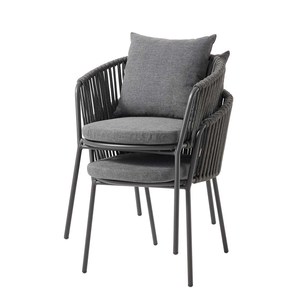 Dank der inklusive Sitz- und Rückenkissen bietet der Kiaro Dark Grey hohen Sitzkomfort – ideal für den Einsatz auf Terrassen, in Biergärten, Hotel-Außenbereichen oder Bistros. Seine widerstandsfähigen Materialien sorgen für eine lange Lebensdauer auch bei anspruchsvollen Witterungsbedingungen. Lassen Sie sich von unseren Fachberatern zu individuellen Gestaltungsmöglichkeiten beraten oder fordern Sie ein kostenloses Farbmuster an.