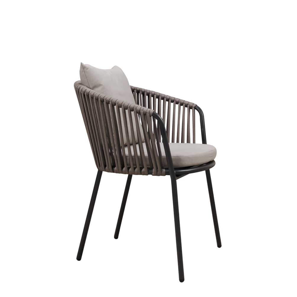 Der Kiaro Taupe vereint anspruchsvolles Design mit funktionaler Vielseitigkeit, abgestimmt auf die Anforderungen der Gastronomie, Hotellerie und öffentlichen Einrichtungen. Das stapelbare Aluminiumgestell in Anthrazit bietet eine langlebige und leichte Konstruktion, während das durchgehende Textylengeflecht Komfort und modernes Flair kombiniert. Ergänzt durch Sitz- und Rückenkissen in Taupe, wird der Stuhl zu einer gute Wahl für den Einsatz im Außenbereich.