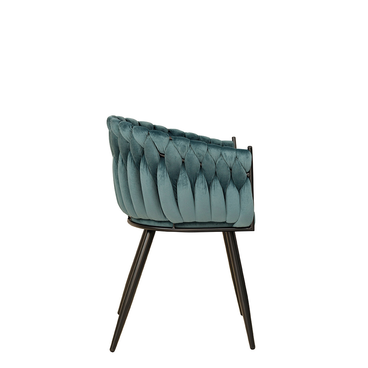 Der Loro ist ein luxuriöser Vollpolsterstuhl mit Metallgestell. Er ist mit dem Stoff Rivano bezogen, den sie in verschiedenen Farben erhalten. Der Stoff sieht wie Samt aus und fühlt sich weich an.