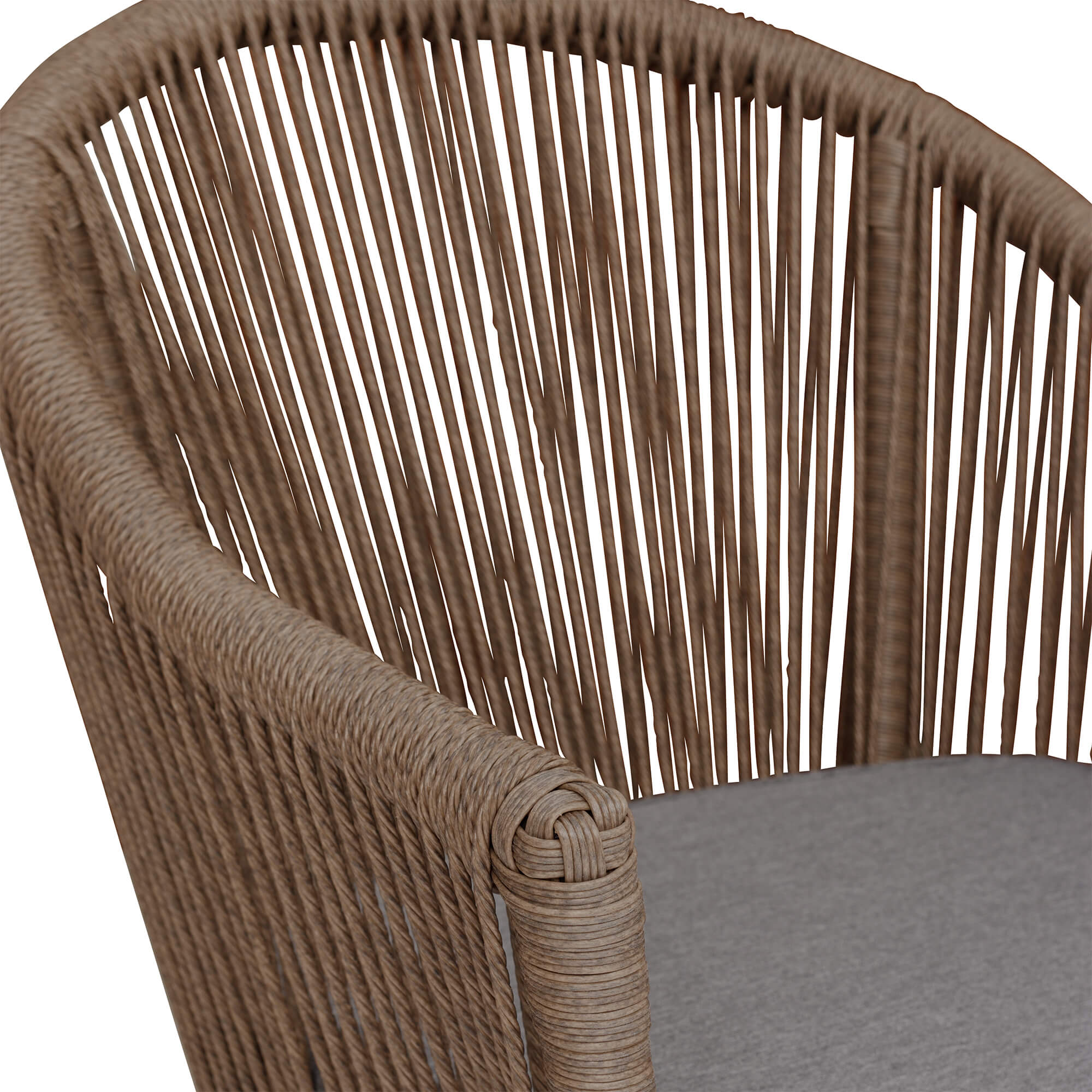 - Sitz- und Rückenfläche: Gedrehtes Kunststoffgeflecht in Natur
