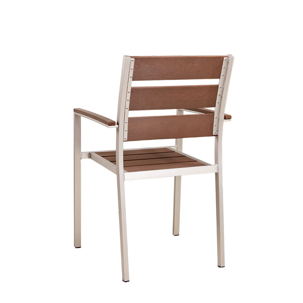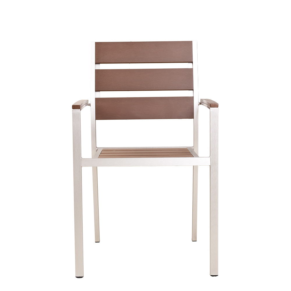 Wetterfester Gastronomiestuhl mit stilvoller Holzoptik für den Outdoor-Bereich