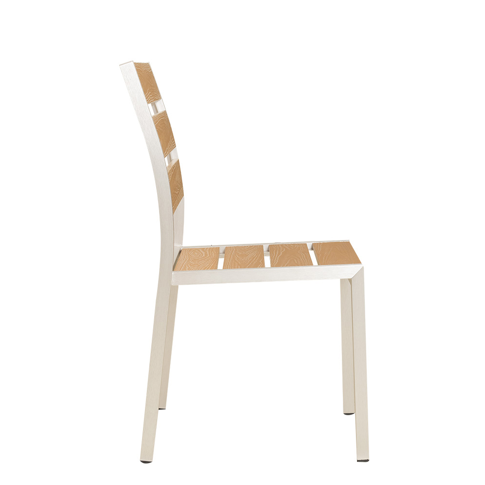 Wetterfester Gastronomiestuhl mit stilvoller Holzoptik für den Outdoor-Bereich