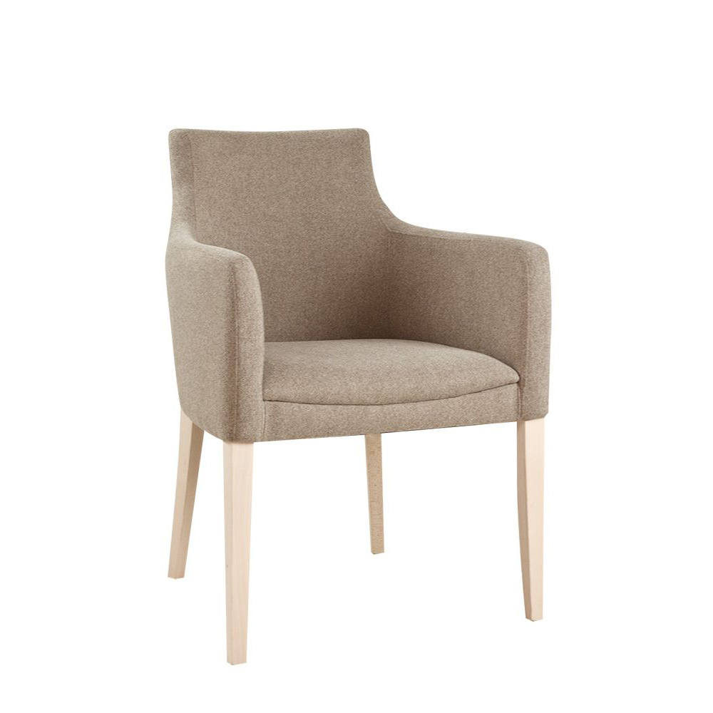 Der NURINA-Arm Vollpolsterstuhl ist ein moderner Gastronomiestuhl mit komfortablen Armlehnen. Der Bezugsstoff und Beizton ist bei diesem Modell frei wählbar.