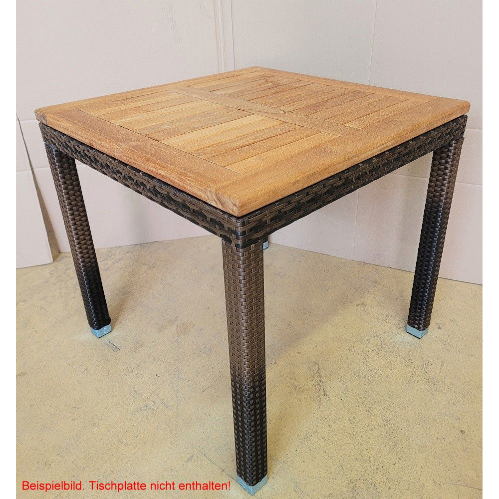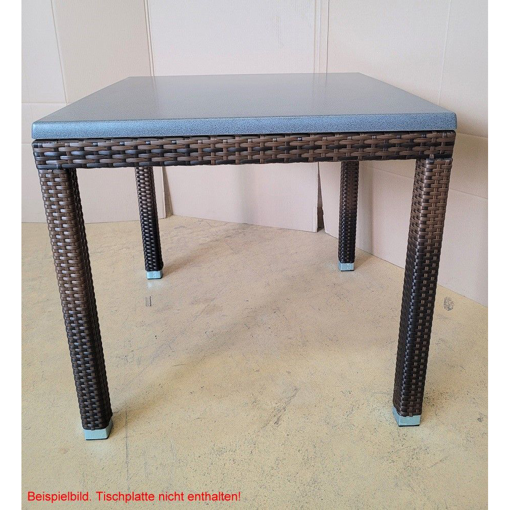 Ein modernes und hochwertig verarbeitetes Tischgestell mit Kunststoffgeflecht für den Outdoorbereich ist das