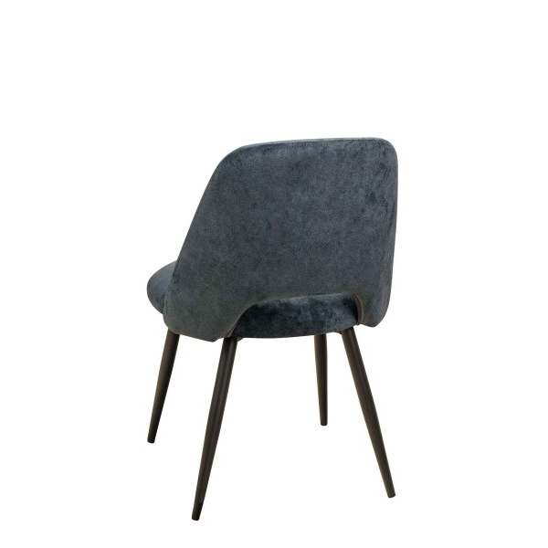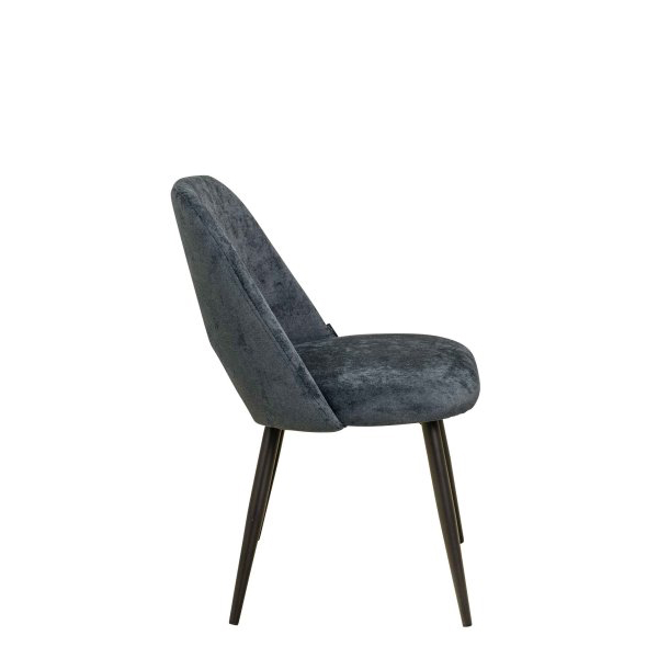 Solider, vollgepolsterter Stuhl mit schwarzem Metallgestell und bequemer gerundeter Rückenlehne. Eine gute Wahl für Gastronomie und Hotellerie.