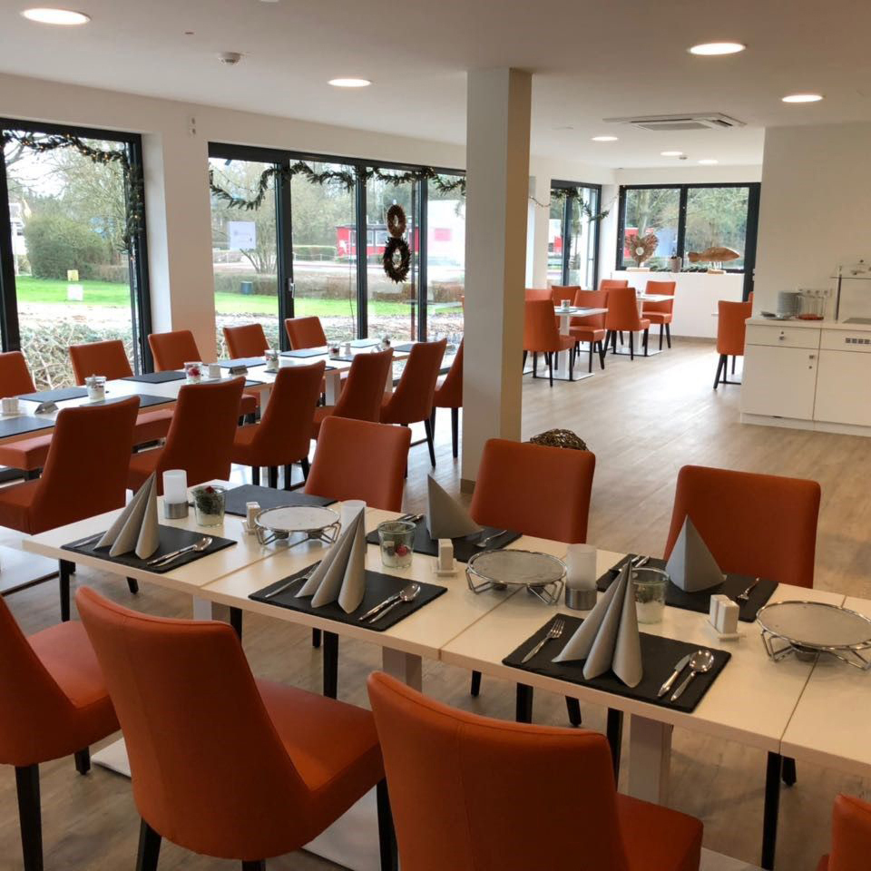 Der Rimora Vollpolsterstuhl ist ein moderner Gastronomiestuhl mit schwungvoller Linienführung. Bezugsstoff und Beizton sind bei diesem Modell frei wählbar.
