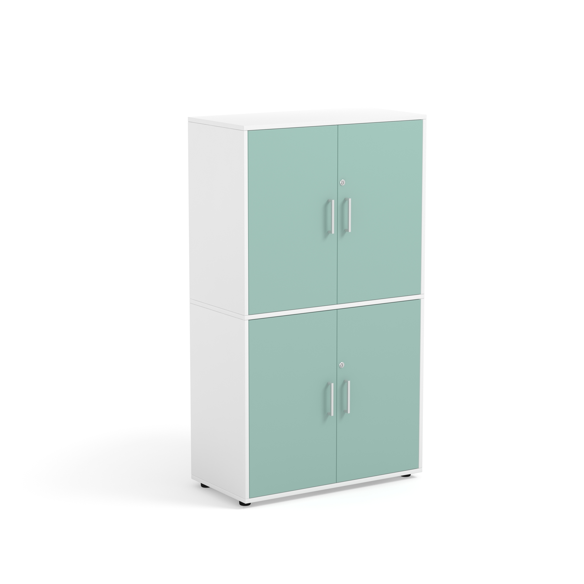 -oben: 2 Tueren mit Metallgriff, abschliessbar -1 Einlegeboden