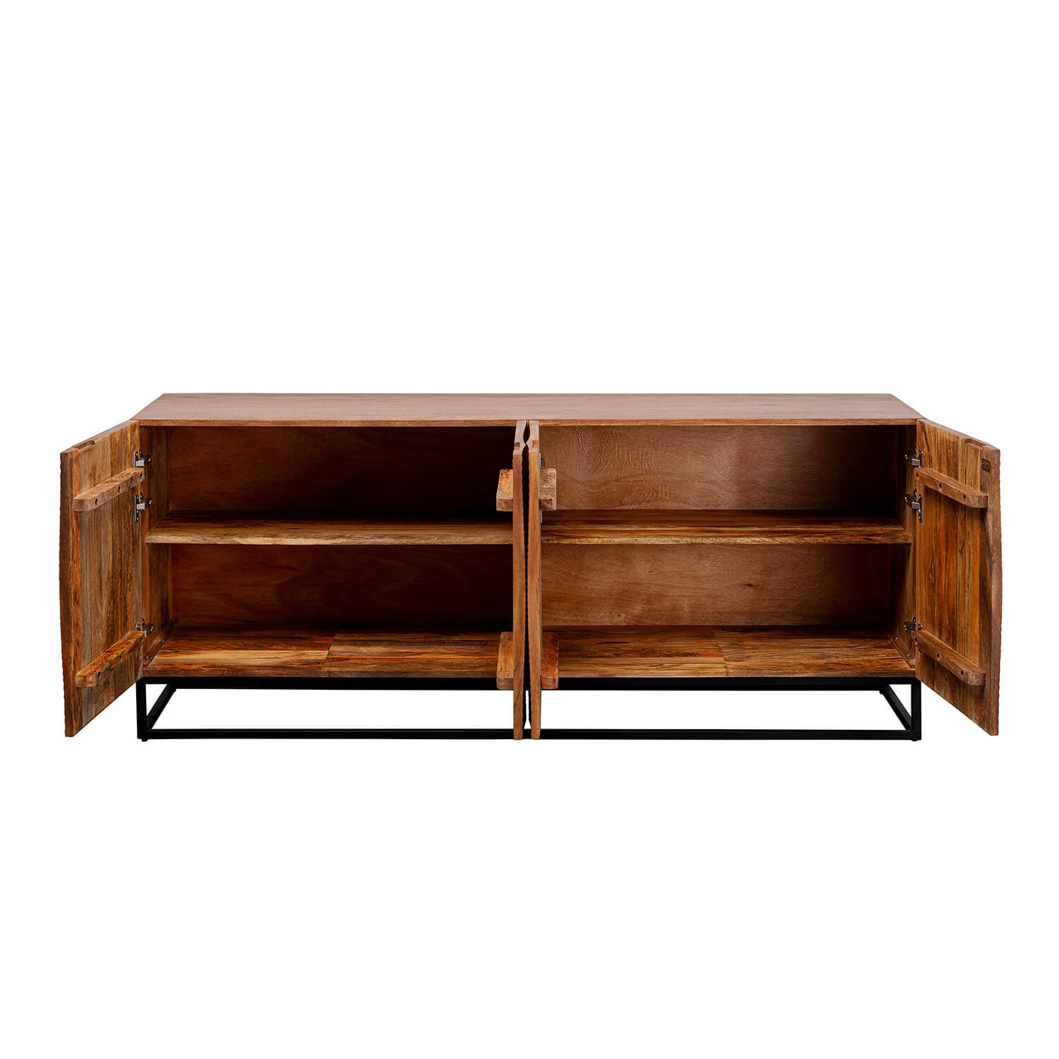 Die 4 Türen des Sideboards schließen sanft und leise dank der Soft Close Funktion, was für zusätzlichen Komfort sorgt. Dieses hochwertige Unikat wurde in Handarbeit hergestellt und überzeugt mit seiner einzigartigen Optik und Qualität.