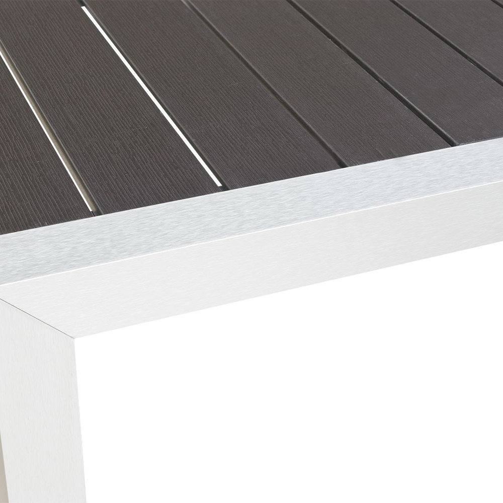 Der SINORA-140 Grau mit Polywood-Lattung eignet sich speziell für den Außenbereich. Das Gestell besteht aus rostfreiem Aluminium in Edelstahloptik.