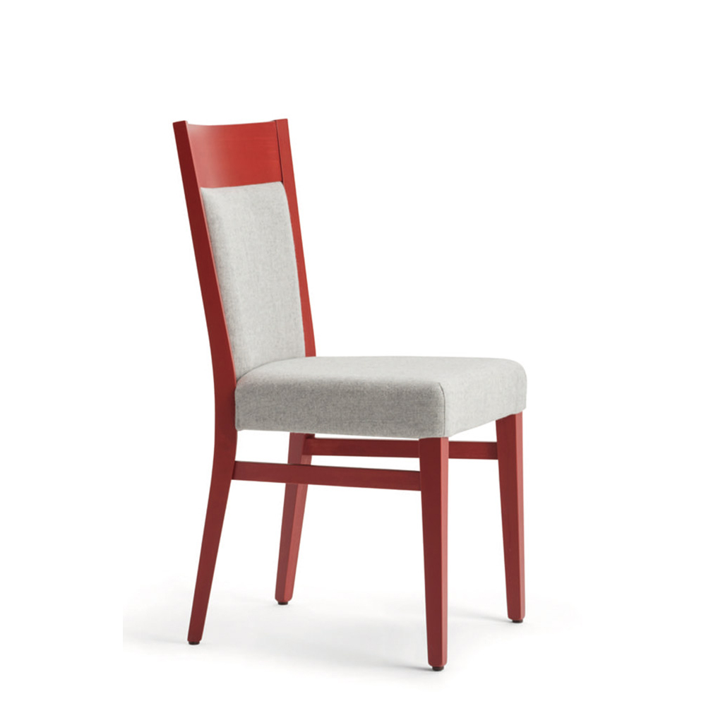 Der Sirva-472E.I4 ist ein eleganter Stuhl aus Buchenholz, der sich durch sein geradliniges Design und die hervorragende Verarbeitung auszeichnet. Dieser Stuhl eignet sich für den Einsatz in Restaurants, Cafés, Hotels oder Bistros, da er sowohl ästhetisch als auch funktional überzeugt. Der gepolsterte Sitz und Rücken bieten den Gästen auch bei längeren Sitzungen hohen Komfort. Zudem ist der Stuhl individuell anpassbar – sowohl der Beizton als auch der Bezug können nach Wunsch gewählt werden.