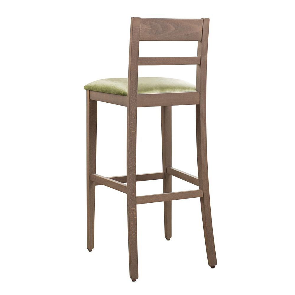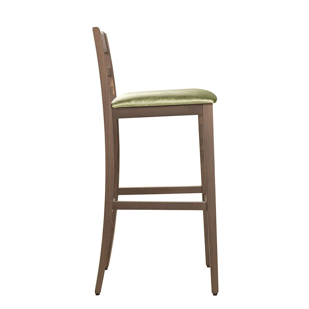 Der Slato-Bar-490EI-P ist ein zeitloser Barstuhl mit Sitzpolster. Durch doppelte Verstrebungen unter dem Sitz gewinnt er an Stabilität. Der Barhocker hat einen verstrebten Holzrücken und ist ideal für jeden Gastronomiebetrieb.