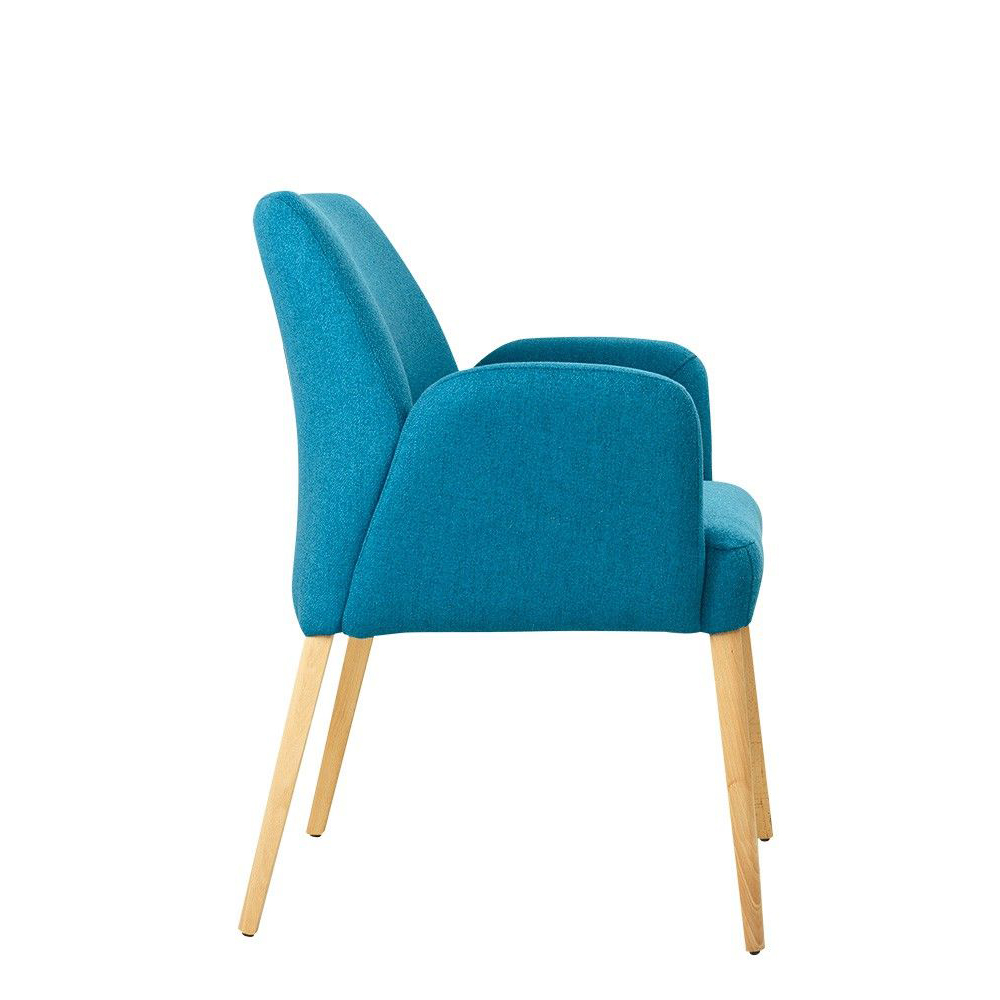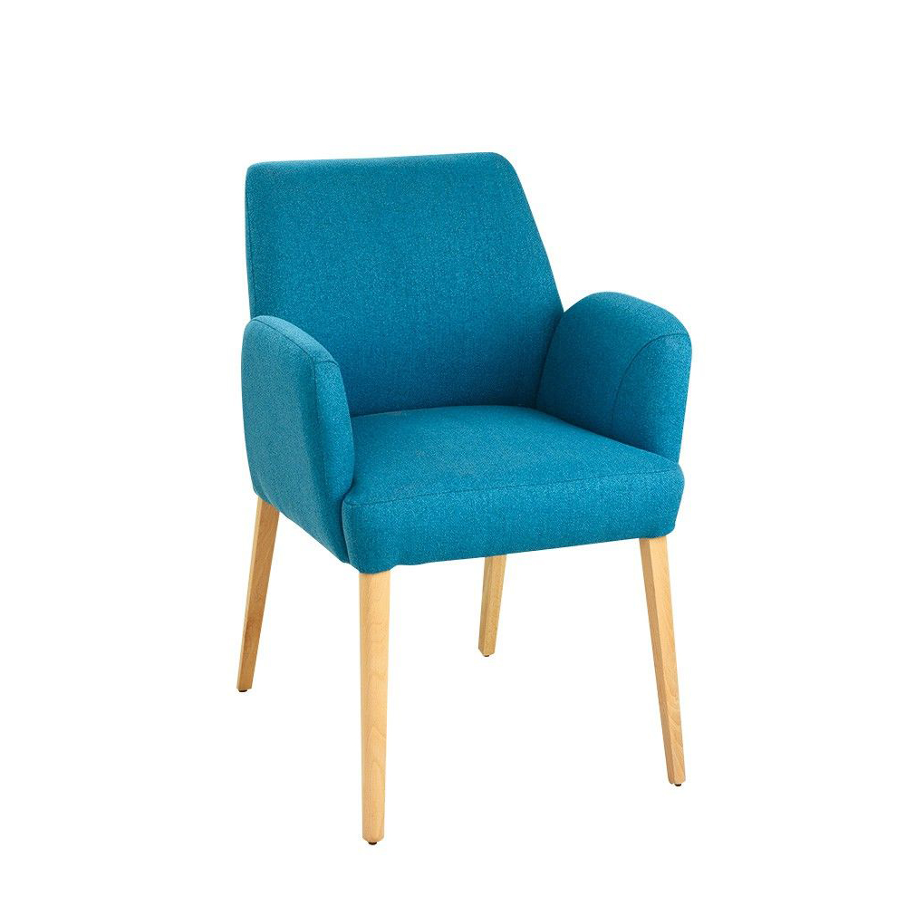 Der Soliva-Arm ist ein moderner Gastronomiestuhl mit gepolsterten Armlehnen. Der Stuhl mit vielen verschieden Bezugsstoffen sowie Beiztönen erhältlich.