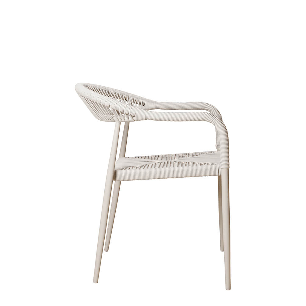 Der Sparta Greige überzeugt mit einem pulverbeschichteten Aluminiumgestell, das für den langfristigen Einsatz im Außenbereich konzipiert ist. Dank seiner Witterungsbeständigkeit eignet er sich für Restaurants, Hotels, Cafés und Bistros. Die ergonomischen Armlehnen sorgen für hohen Sitzkomfort, während das moderne Farbdesign in Greige eine stilvolle Atmosphäre schafft.