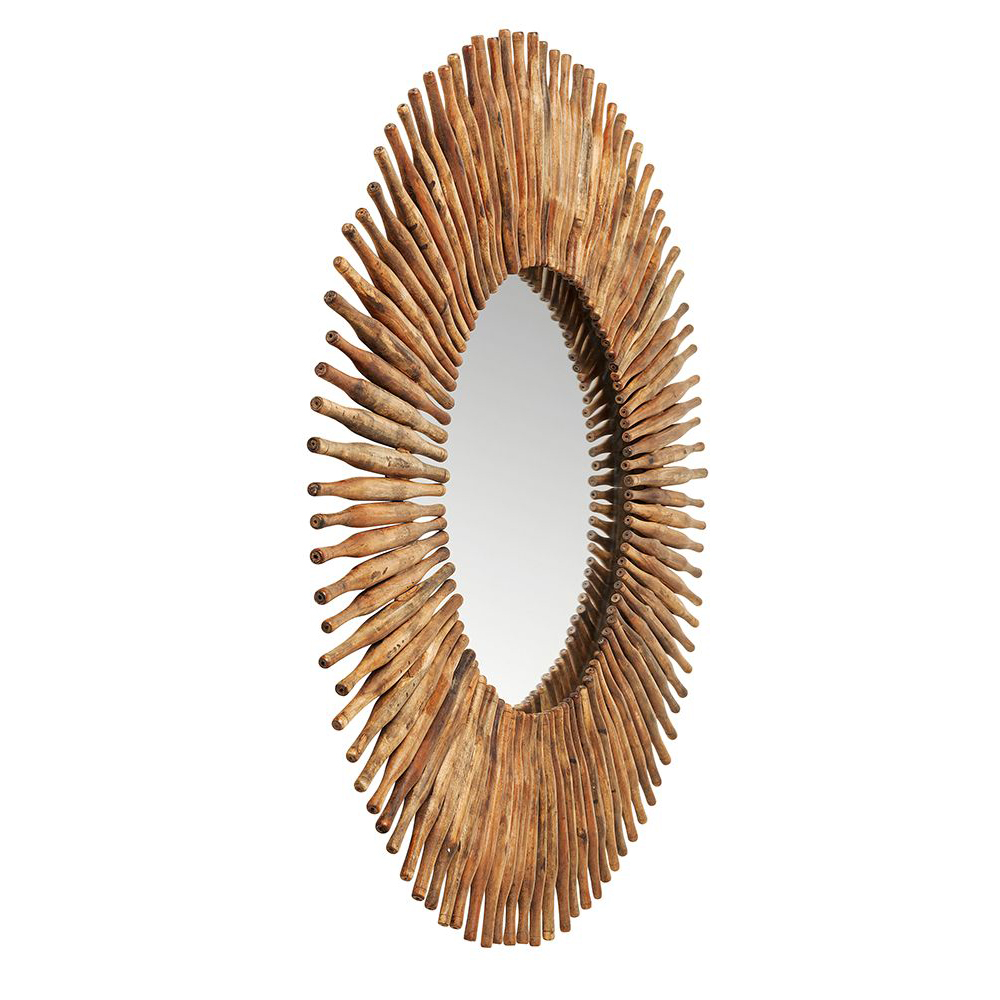 - Großer runder Wandspiegel mit einem Rahmen aus recycelten Holzstäben