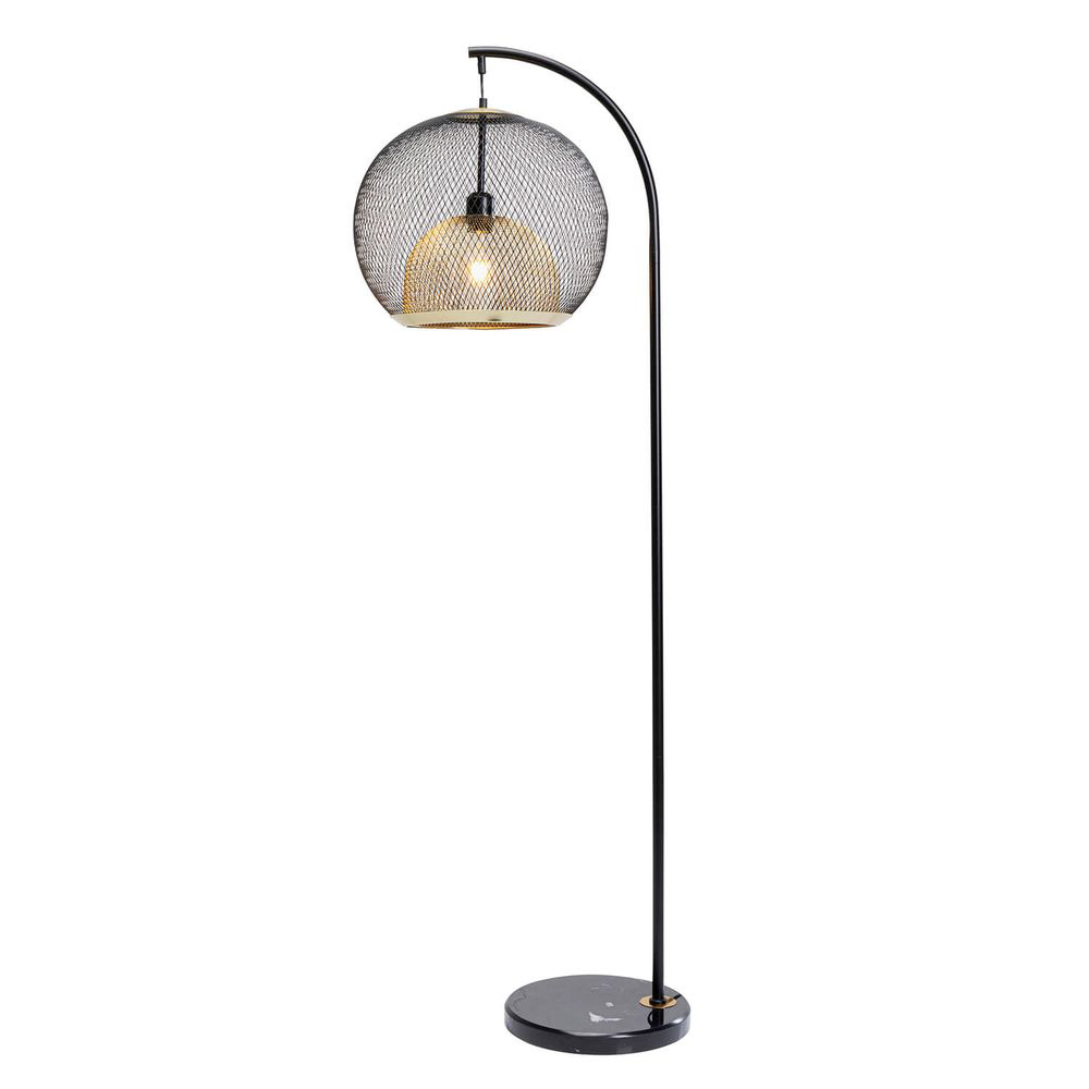 Diese Designer-Lampe beeindruckt durch ihre ausgefeilte Gestaltung. Ihr kugelförmiger Schirm besteht aus zwei Drahtgeflechten in den Farben Schwarz und Messing, wodurch der ansonsten kühlen und modernen Ausstrahlung der Wohnzimmerlampe Wärme und Eleganz verliehen wird. Perfekt platziert neben dem Sofa, verbreitet sie stimmungsvolles Licht. Die Verwendung hochwertiger Materialien garantiert eine langanhaltende Freude an dieser schwarzen Stehleuchte. Die technischen Spezifikationen umfassen: 230 V, 50/60 Hz, Fassung E27, ein Leuchtmittel, maximal 40 Watt (Leuchtmittel nicht enthalten).