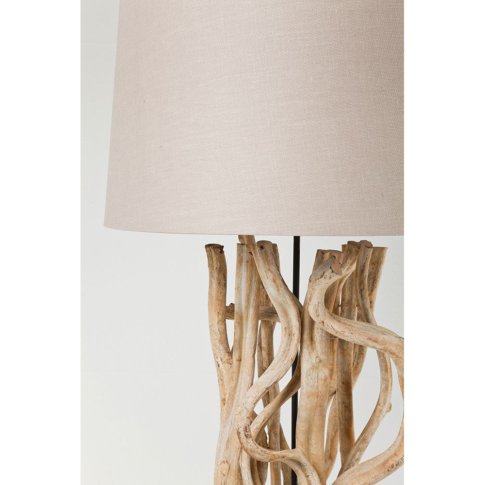 Die Stehlampe besteht aus Holz und hat die Maße 150 x 55 x 55 Zentimeter (H/B/T). Das kreative Design zeichnet sich durch einen Leuchtenfuß aus naturbelassenem, massivem Akazienholz aus. Jede Lampe ist aufgrund der Verwendung von Naturmaterialien ein Unikat, daher können leichte Abweichungen von der Abbildung möglich sein. Der beigefarbene Lampenschirm mit Bezug aus reiner Baumwolle sorgt für dezentes, indirektes Licht. Das benötigte Leuchtmittel ist 230 V, Fassung E27, Anzahl Leuchtmittel 1, maximal 60 Watt (Leuchtmittel nicht inklusive).
