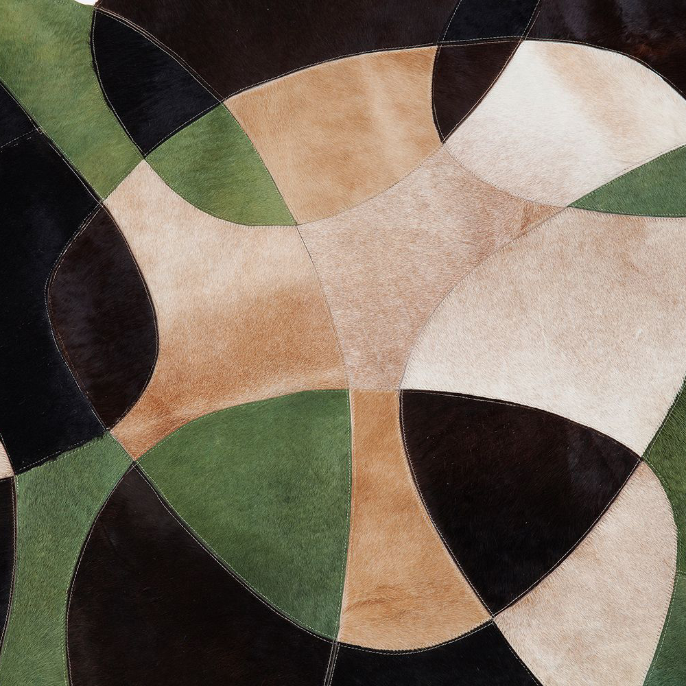 Der moderne Fellteppich in den Farben Beige, Grün und Schwarz mit den Maßen 0,5 x 170 x 240 Zentimetern (H/B/T) besticht durch seine organische Form und wird so zum Blickfang in jedem Raum. Mit Teppichen wie diesem können Sie Wohnbereiche wie die Sitzlandschaft oder den Esstisch stilvoll definieren.