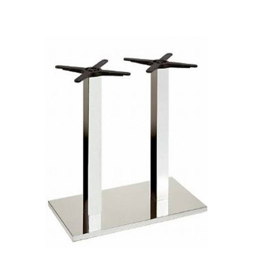 Das TG-407-C ist ein edles Tischgestell für die Gastronomie. Das Chromgestell hat zwei Tischbeine und eine eckige Bodenplatte.