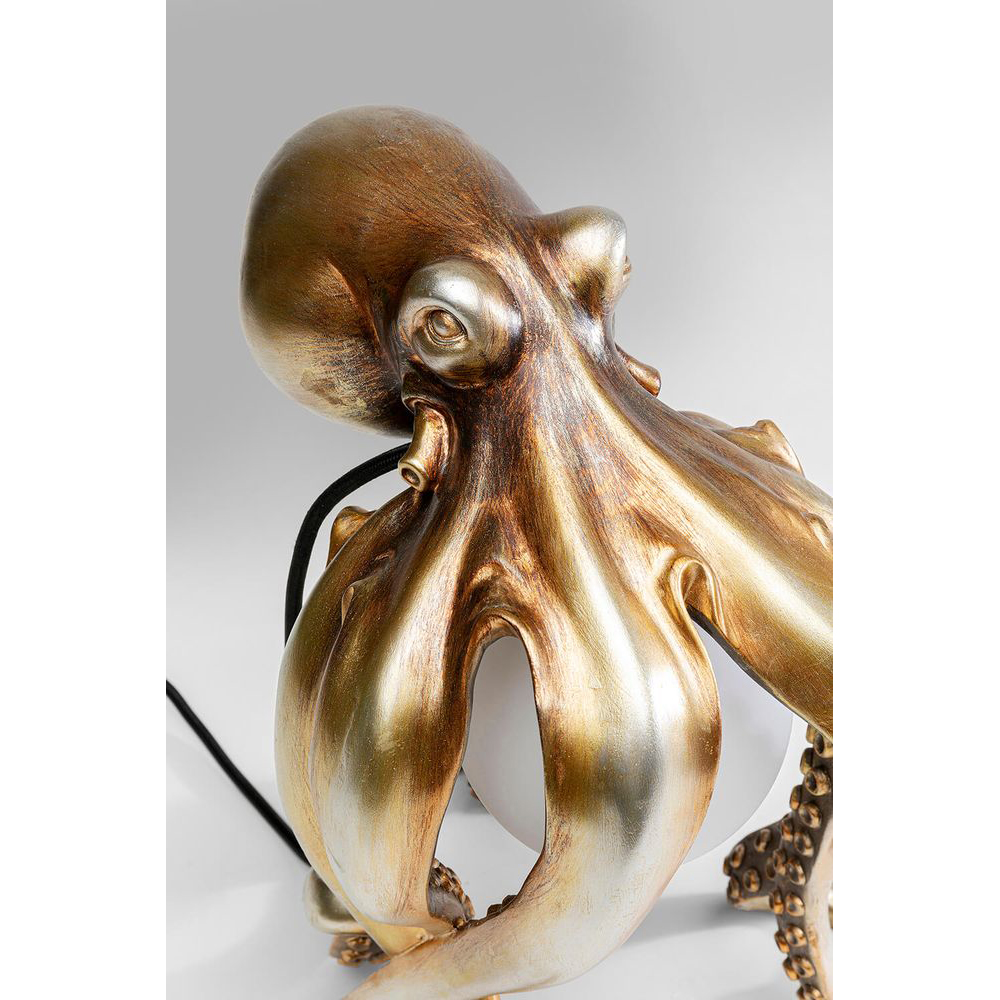 - Originelle Tischleuchte mit einem handgefertigten, goldfarbenen Fuß in Form einer Krake