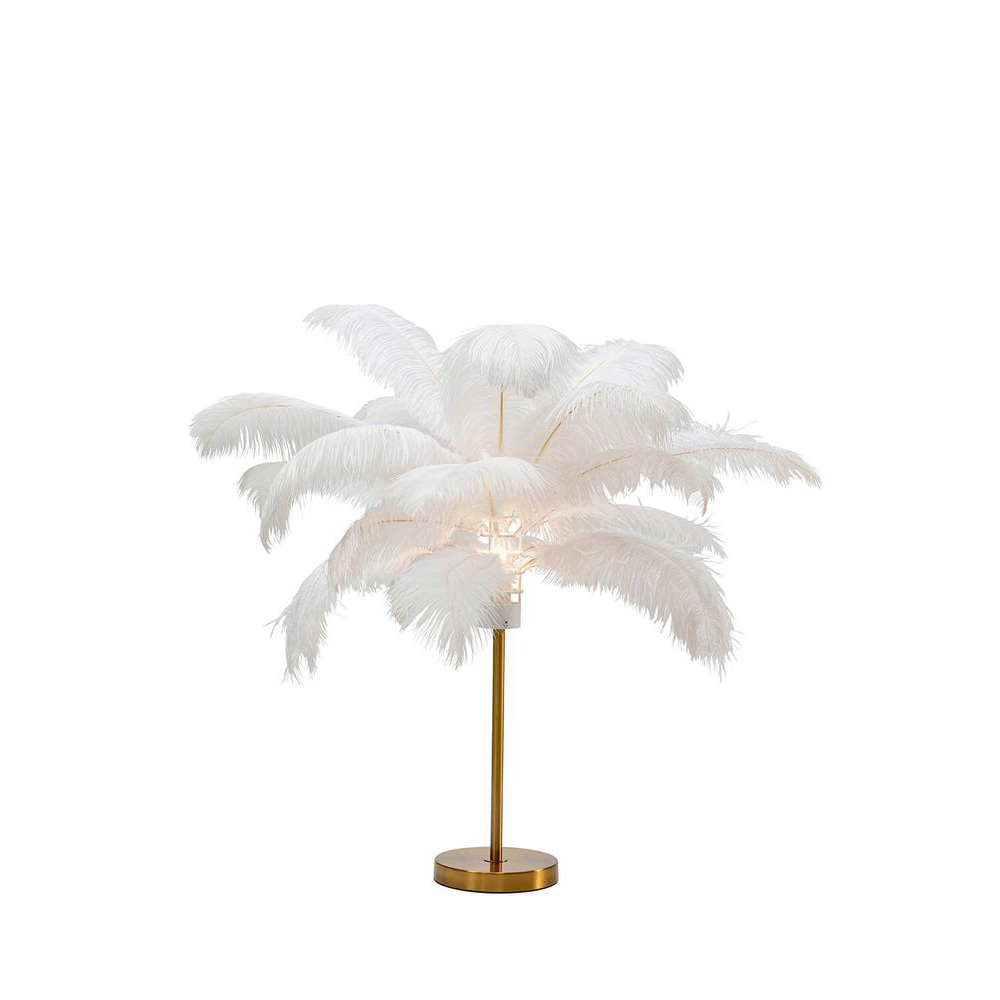 - Tischlampe mit echten weißen Straußenfedern und goldener Farbe, Maße: 60x50x50 cm (H/B/T)