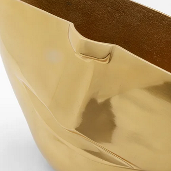 Goldene Vase in Schalenform aus Metall, 46 x 29 x 16 cm (H/B/T)