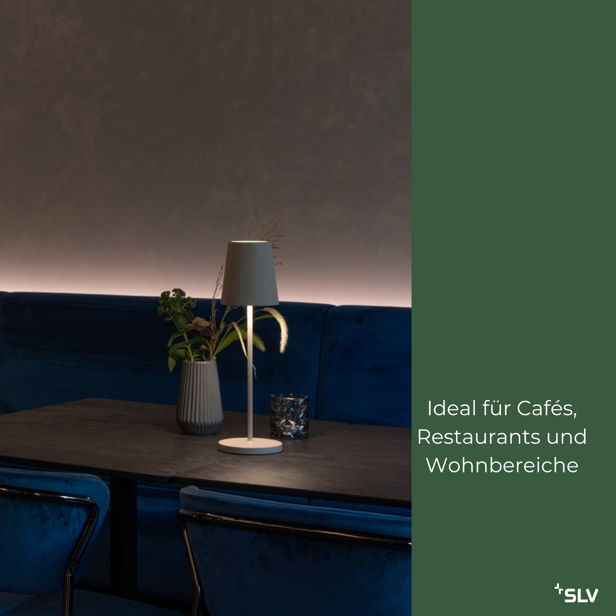 VINOLINA TWO heißt die hochwertig aus Aluminium gefertigte Tischleuchte, die sich dank Schutzart IP65 auch nach draußen mitnehmen lässt. In ihrem zeitlosen Design verströmt sie mit einer einzigen Akkuladung 10 Stunden ein nach oben und unten gerichtetes Licht, dessen Farbtemperatur via CCT-Switch einstellbar ist (2200K/2700K/3000K). Dabei ist die mobile Leuchte in sechs verschiedenen Trendfarben erhältlich. Die Ladestation ist mitsamt USB-Kabel im Lieferumfang enthalten. Erleben Sie mit VINOLINA TWO eine elegante Lösung in Sachen Licht, die via Touchschalter noch dimmbar ist.