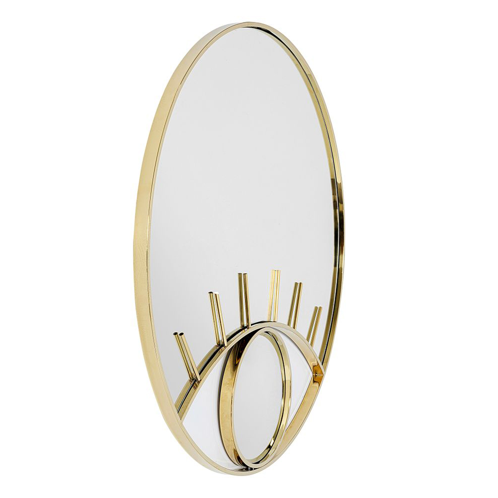 Der Wandspiegel "Occhi" mit einem Durchmesser von 100 cm besticht durch sein einzigartiges Design, das von einem charmanten Augenmotiv gekrönt wird. Die goldene Farbe verleiht Ihrem Raum eine warme und luxuriöse Atmosphäre. Dieser Spiegel ist nicht nur funktional, sondern auch ein kunstvoller Blickfang, der alle Blicke auf sich zieht. Egal ob im Wohnzimmer, Flur oder Schlafzimmer - sein eleganter Stil versprüht jeden Tag einen Hauch von Eleganz.